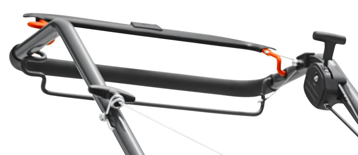 Dank des klappbaren Führungsholm kann der Rasenmäher platzsparend eingelagert oder transportiert werden.